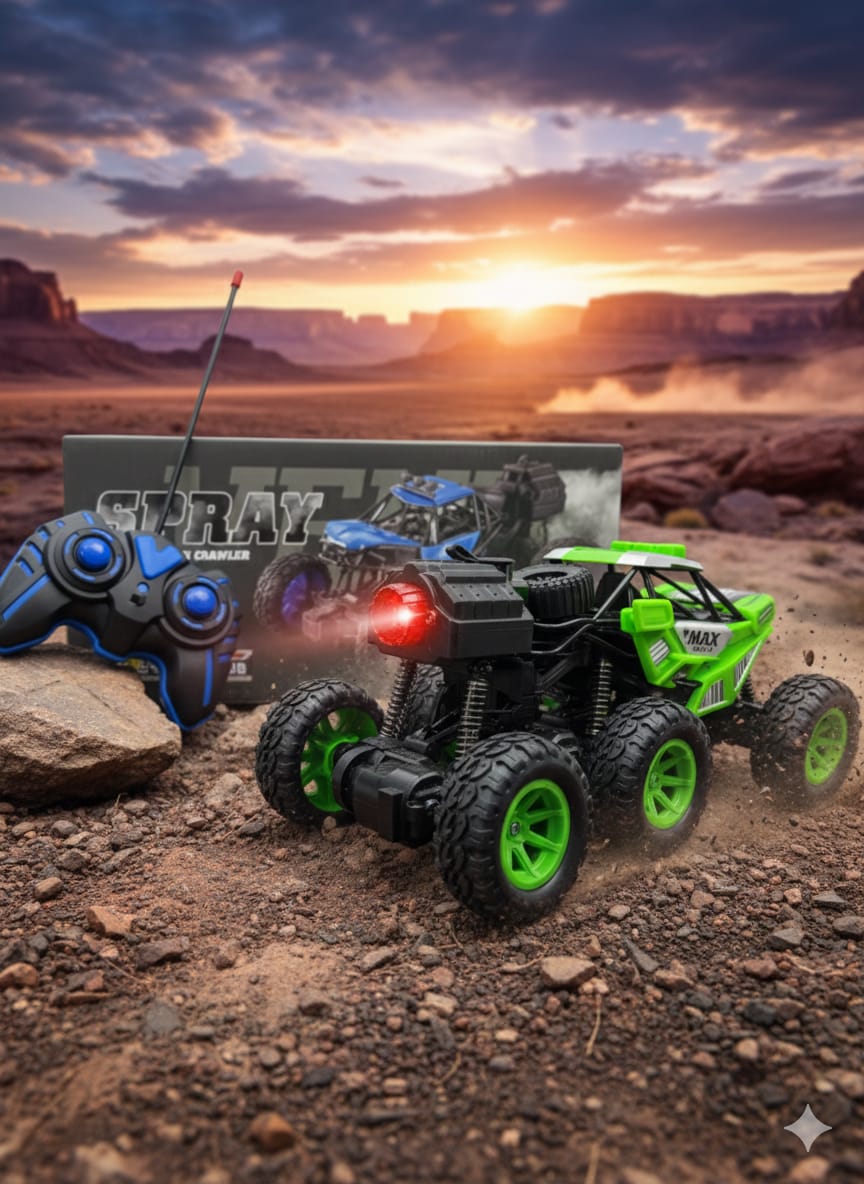 Experience the thrill of off-road racing with this powerful 6-wheel drive RC stunt truck. Designed for durability and high performance, this vehicle features a unique “Spray” function that emits a cool mist from the rear, mimicking a real exhaust effect. Whether you are racing through the streets at night or tackling tough indoor terrain, the bright LED lights and lime-green styling make this car a standout in any collection.