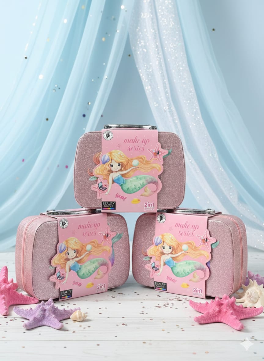 All-in-One Kids’ Mermaid Makeup Kit with Portable Glitter Vanity Case