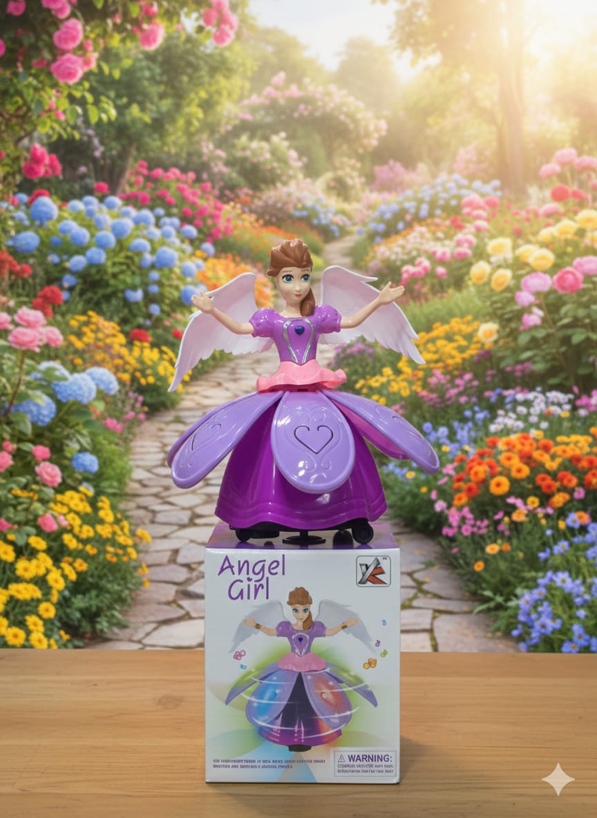 The Angel Girl is a magical battery-operated musical toy designed to captivate young children with its graceful movement and vibrant light displays. Featuring a beautifully dressed doll with delicate angelic wings, this toy brings a touch of fantasy to playtime as it twirls and glides across the floor. Designed primarily for children aged 3 and up, it combines music, motion, and a unique “blossoming” skirt effect to create an immersive, dreamlike experience.