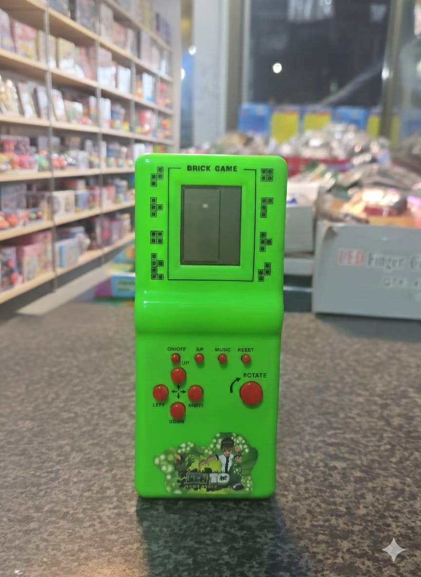 These classic handheld “Brick Game” consoles offer a nostalgic gaming experience with a variety of built-in block-style puzzles. The devices feature a vibrant, solid-colored body—available in red, green, and orange—decorated with popular character stickers like Angry Birds, Ben 10, and Chhota Bheem. Designed with a simple LCD screen and tactile buttons, these consoles provide portable, offline entertainment that challenges a player’s logic and reaction speed