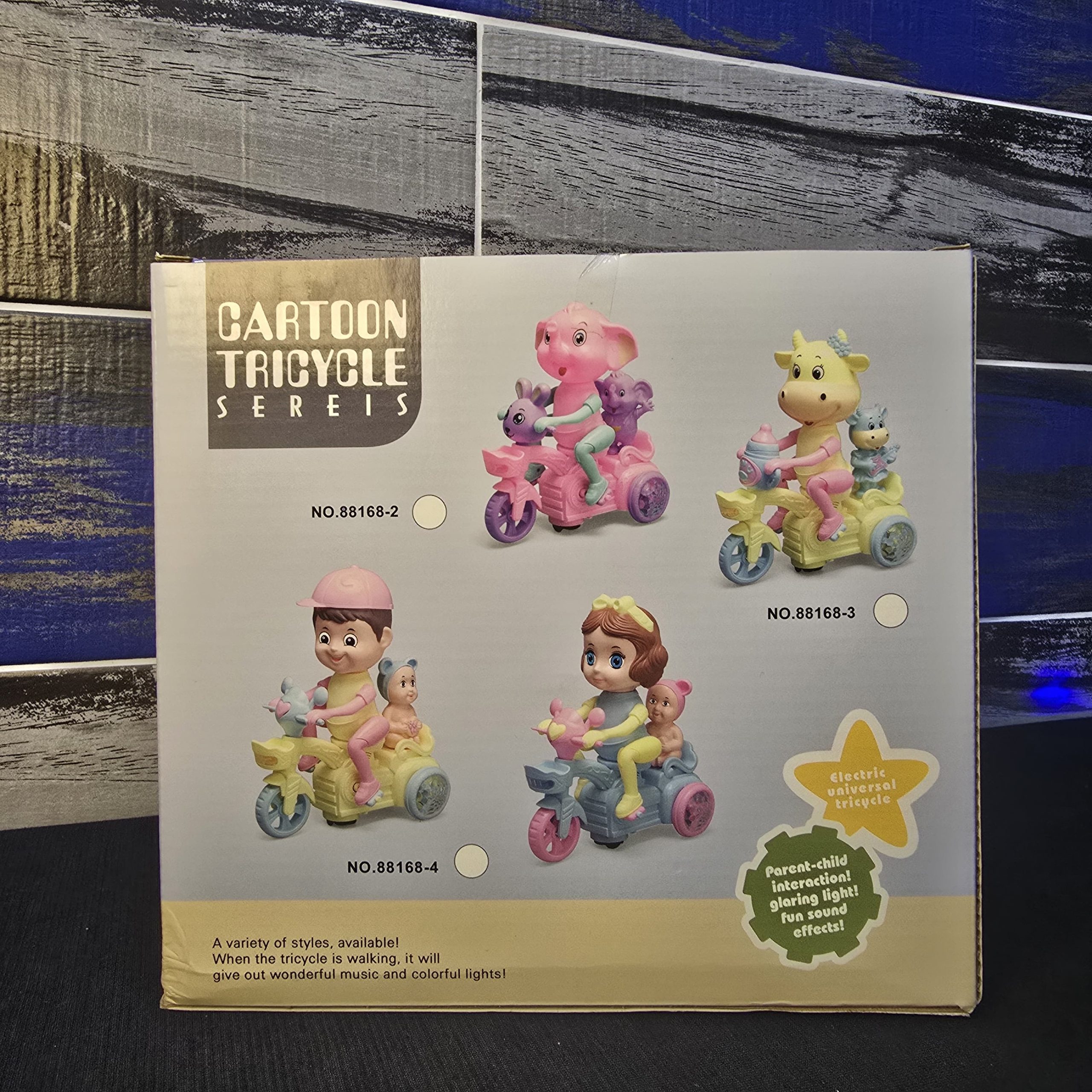 This toy is an “Electric Universal Tricycle,” which in the world of toy manufacturing translates to a specific set of internal components: