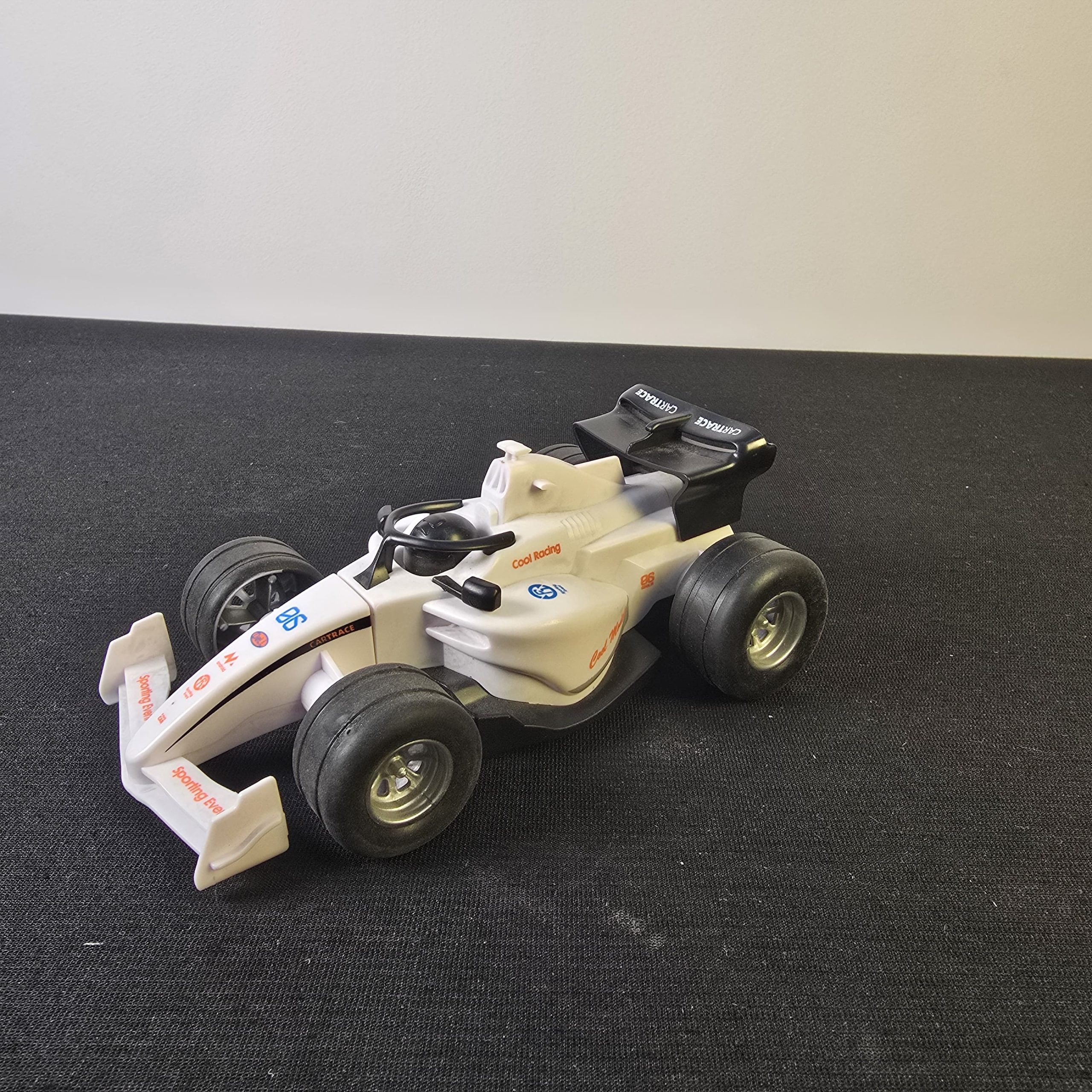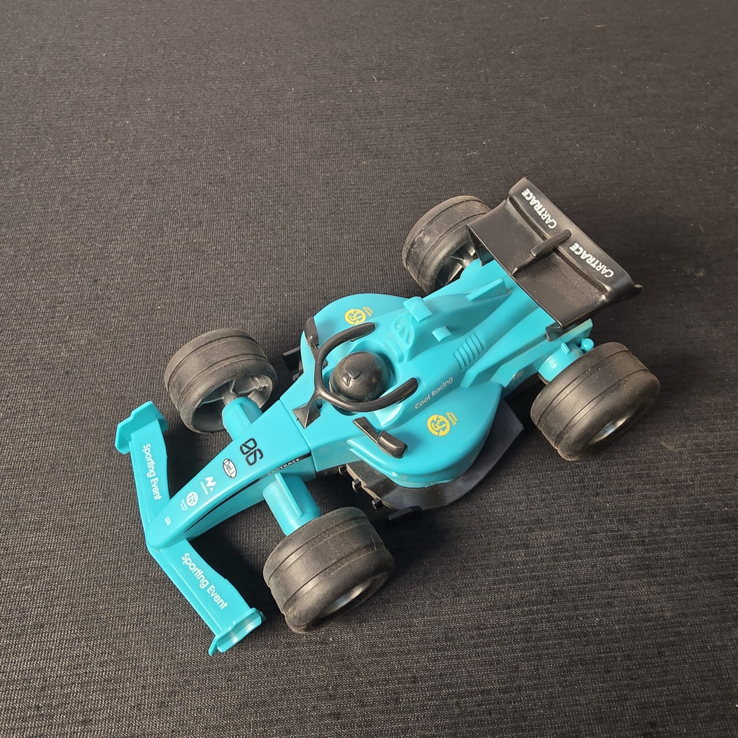 • Key Feature (Foldability): The car is designed with a hinged chassis. When unfolded, the body often extends to reveal a hidden track or a ramp inside. Some versions of this toy allow the “front” of the F1 car to act as an ejection launcher for smaller 1:64 scale cars.