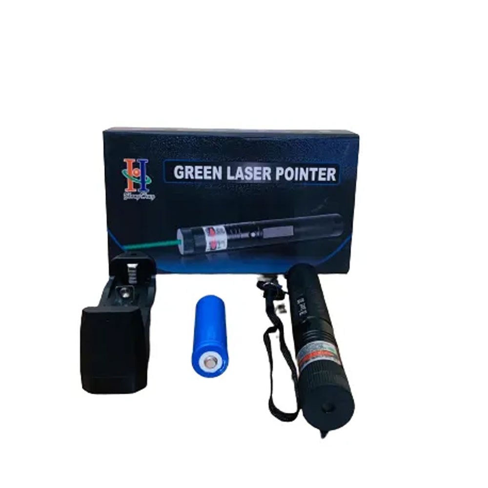 A compact, powerful green-beam laser pointer with adjustable focus, built-in rechargeable battery, and a durable aluminum body — ideal for presentations, astronomy, outdoor pointing, or night-time use.