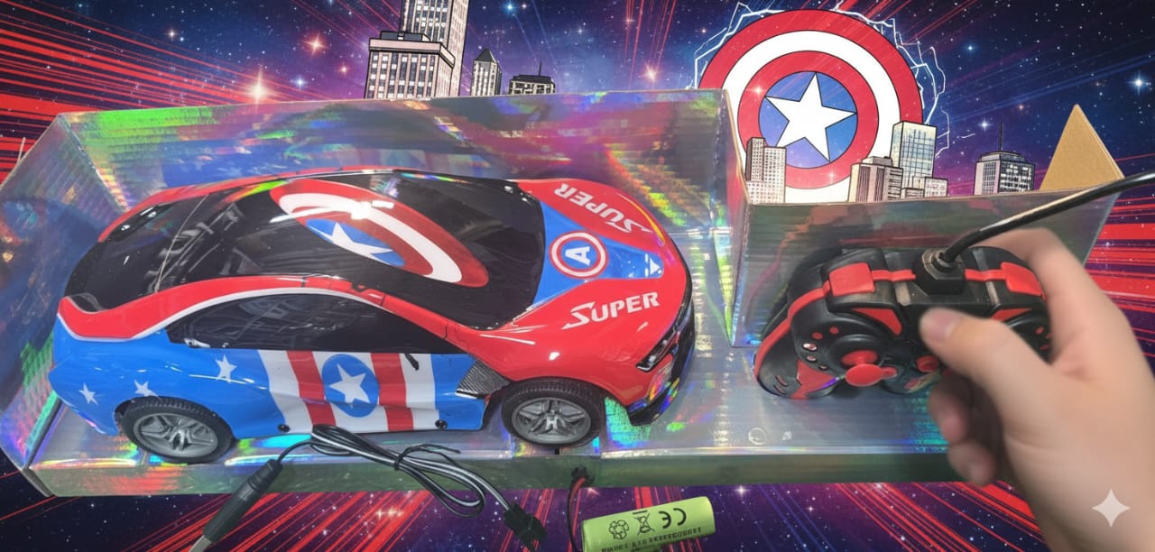 The Captain America Shield Attack RC is a dynamic, full-function remote control car that brings superhero heroics to life. This 1:14 scale vehicle features Captain America’s iconic shield design and signature red, white, and blue colors. Engineered for both indoor and outdoor adventures, it combines innovative technology with a rugged build, featuring a real working suspension to handle various terrains with ease.