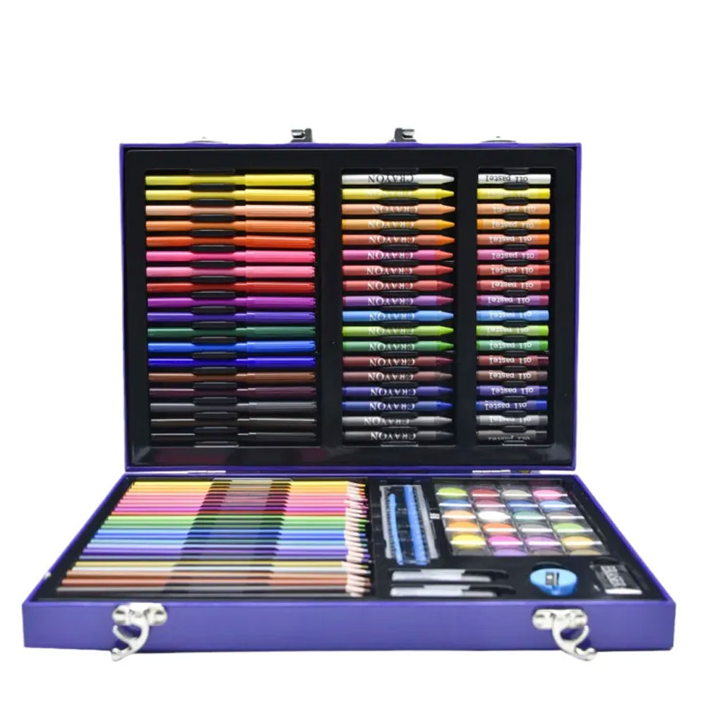 128-piece complete art set — crayons, markers, colored pencils, paints, and brushes 🖍️