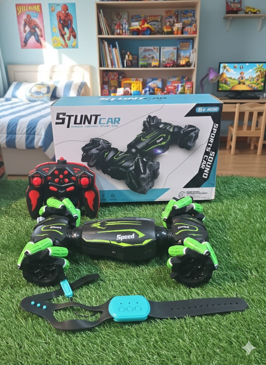 This high-speed RC Stunt Car is designed for versatile indoor and outdoor play. It features a futuristic, articulated body that allows it to transform and twist, making it capable of handling various terrains and obstacles. Equipped with “Stunt Wheels,” it is built for durability and acrobatic movements that standard RC cars cannot perform.